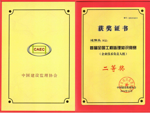 首届全国工程监理知识竞赛企业技术负责人获奖证书-边保乐